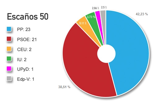 El Partido Popular logró el 42,2 por ciento de los votos, casi 4 puntos porcentuales por encima del Partido Socialista, que ha obtenido un 38,5 por ciento de los votos. El PP consigue 23 de los 50 escaños que estaban en liza como representación de España en la Eurocámara.